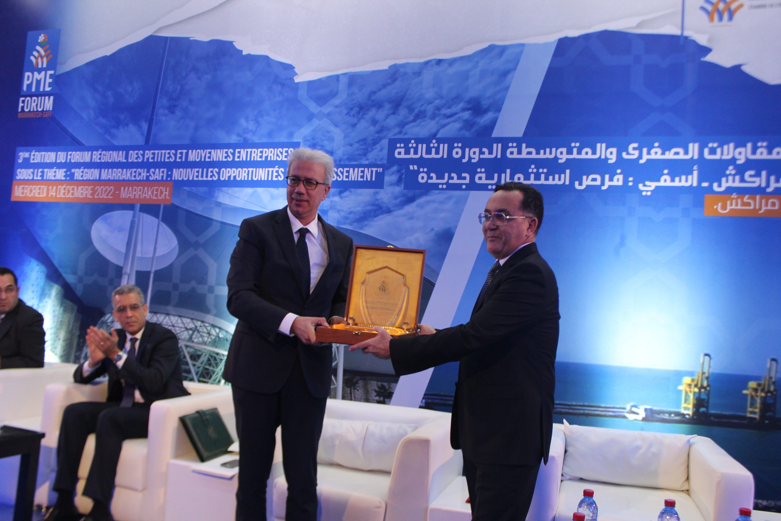 نظمت غرفة التجارة والصناعة والخدمات مراكش آسفي الدورة الثالثة للمنتدى الجهوي للمقاولات الصغيرة والمتوسطة تحت شعار ” فرص استثمارية جديدة ” ويندرج تنظيم هذا المنتدى، في إطار المسار التنموي الذي تشهده جهة مراكش آسفي التي أصبحت قطبا اقتصاديا بامتياز من جهة، ومن جهة أخرى على تعبئتها الشاملة لتنزيل النموذج التنموي الجديد الذي رسم معالمه صاحب الجلالة الملك محمد السادس ، وتجسيدا لهذه الرؤية أضحى من الضروري إبراز كافة المؤهلات والبنيات التحتية التي تزخر بها الجهة في شتى الميادين وجعلها قوة استثمارية جاذبية على أكثر من صعيد.
