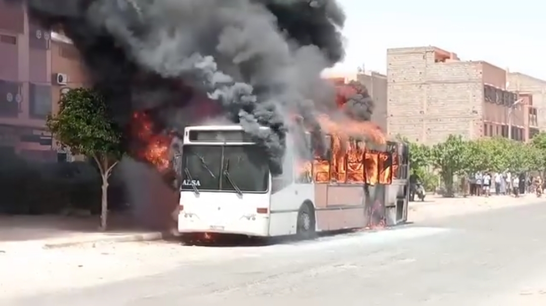إندلع حريق مهول ،قبل قليل من صباح اليوم الأحد 16 يوليوز الجاري في حافلة النقل الحضري تابعة للشركة المفوض لها قطاع النقل بمدينة مراكش ” الزا” وذلك على مستوى تجزئة الآفاق التابعة لجماعة سعادة التابعة ترابية لعمالة مراكش .