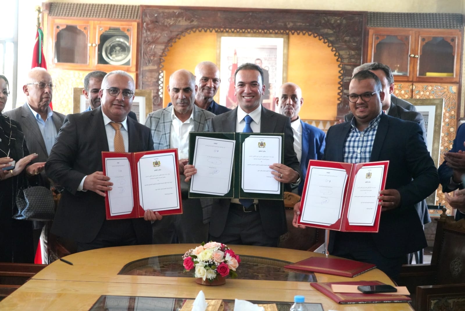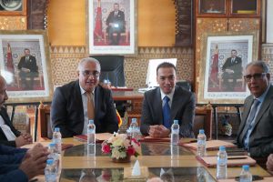 كاتب الدولة المكلف بالصناعة التقليدية والاقتصاد الاجتماعي والتضامني ورش بناء قرية الحرفيين بواحة سيدي ابراهيم بعمالة مراكش ويلتقي مكتب الغرفة