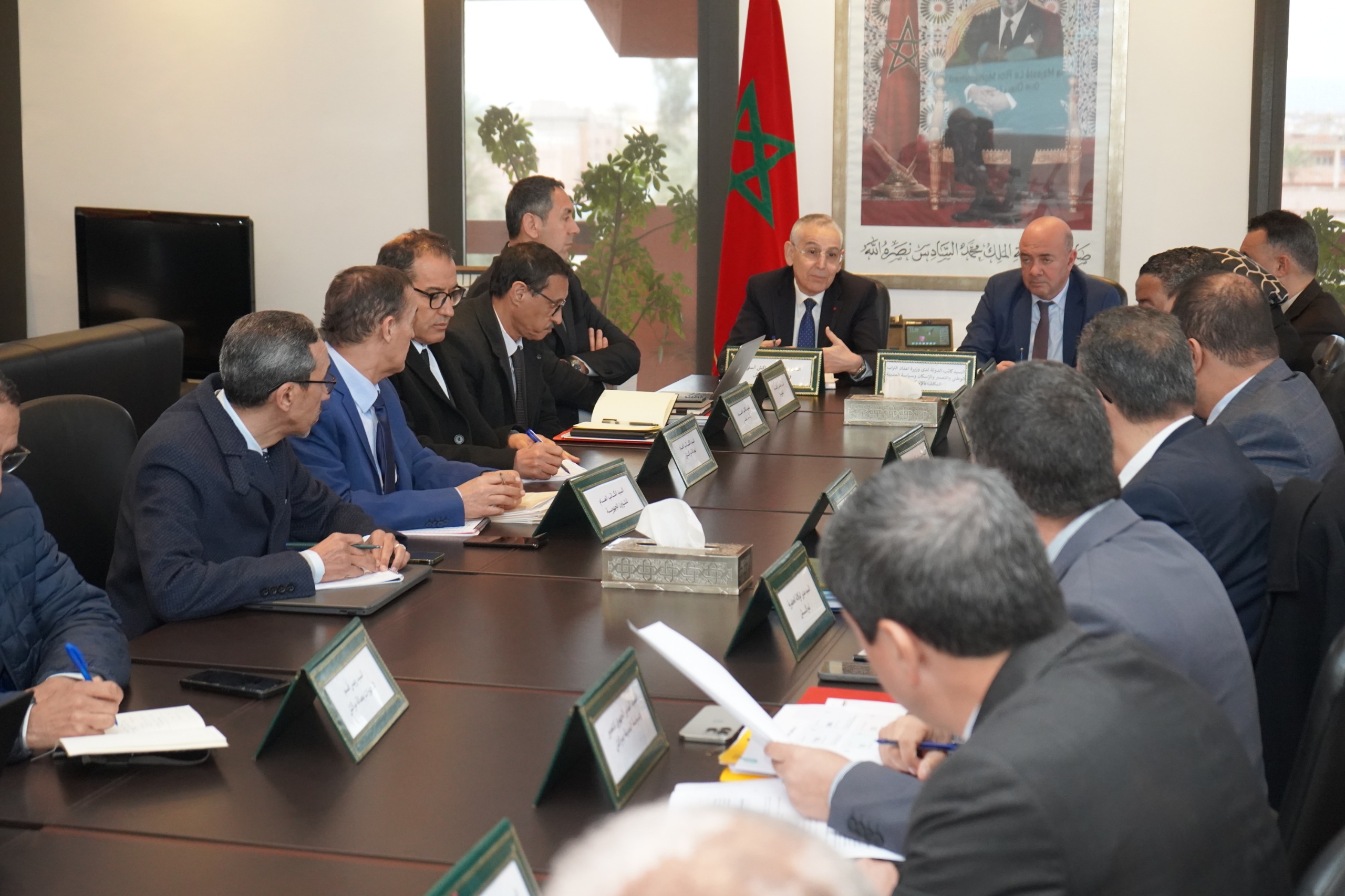 انعقد يوم الأربعاء 04 مارس 2026، بمقر ولاية جهة مراكش-آسفي، اجتماع ترأسه كاتب الدولة لدى وزيرة إعداد التراب الوطني والتعمير والإسكان وسياسة المدينة المكلف بالإسكان ووالي جهة مراكش-آسفي عامل عمالة مراكش، بحضور الكاتب العام للوزارة، وعامل إقليم الصويرة، والكاتب العام لإقليم آسفي، والمديرة العامة للوكالة الوطنية للتجديد الحضري وتأهيل المباني الآيلة للسقوط، ومدير مديرية الإسكان والإنعاش العقاري، وذلك في إطار تتبع وتنزيل برنامج تأهيل المباني الآيلة للسقوط بكل من عمالة مراكش وإقليمي آسفي والصويرة.